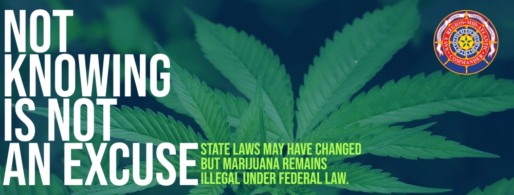 States within the Navy's Mid-Atlantic region that have legalized the possession and recreational use of marijuana – Connecticut, Illinois, Maine, Massachusetts, Michigan, New Jersey, New York, Vermont, Virginia – contradict Federal law, which still applies on DoD facilities and to military and civilian personnel – even those who are state residents.